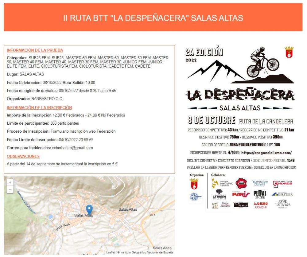 Organiza: Ayuntamiento de Salas Altas y Club Ciclista Barbastro
