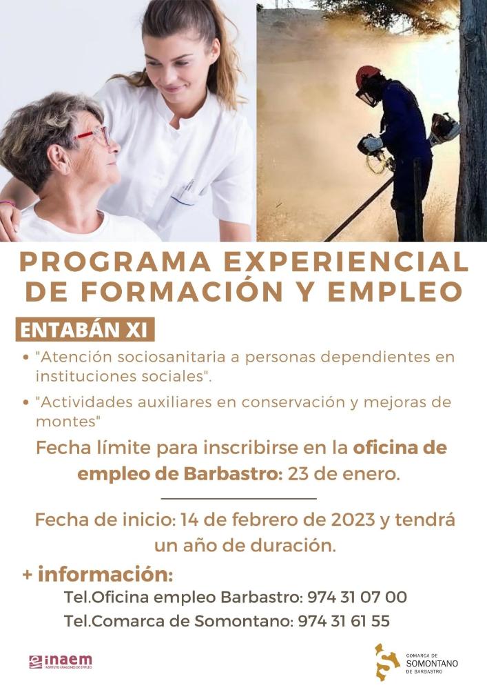 La Comarca de Somontano y el Instituto Nacional de Empleo, INAEM, han abierto la inscripción para la realización de dos nuevos cursos del Programa Experiencial de Formación y Empleo, ENTABAN XI: