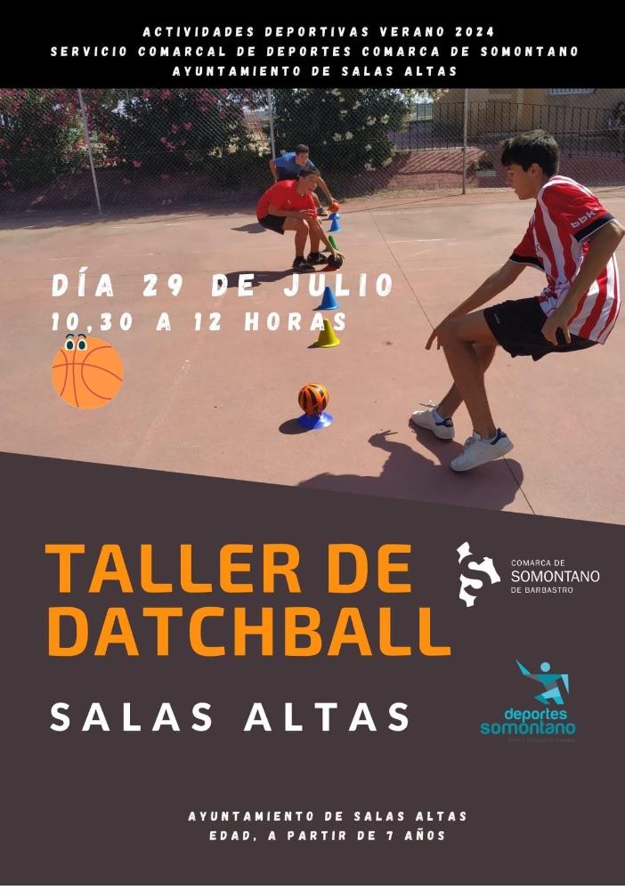 Por lo que respecta al Datchball, se realizará un taller de este deporte el lunes, 29 de julio, de 10:30h a 12h. en las instalaciones municipales de Salas Altas. Es una disciplina deportiva relativamente nueva ya que fue reconocido oficialmente como deporte en Aragón, en 2016. Además, de entre todos los deportes, éste se considera uno de los más integradores ya que al ser un deporte mixto, las chicas y los chicos juegan en igualdad de condiciones. Y, sobre todo, el datchball es ante todo un deporte divertido.