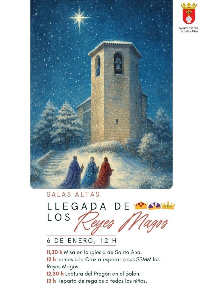 El próximo martes 6 de enero, Sus Majestades los Reyes Magos de Oriente llegarán a Salas Altas para saludar y repartir regalos a los niños y niñas.