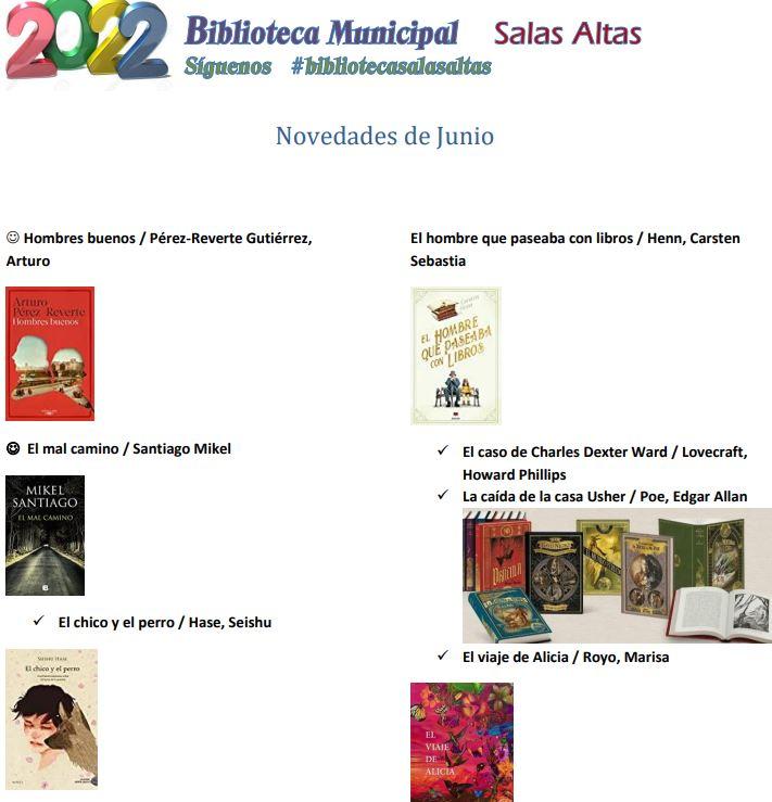 La Biblioteca Municipal de Salas Altas ha incorporado este verano alrededor de 20 nuevos títulos para seguir disfrutando de la lectura este verano. Las nuevas adquisiciones nos trasladan a mundos fantásticos y a épocas históricas; nos presentan misterios casi imposibles de resolver y también aventuras cotidianas.