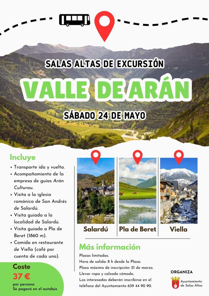 Se trata de un atractivo viaje turístico y cultural al Valle de Arán el próximo sábado día 24 de mayo, donde se visitarán las localidades de Salardú y Viella y la gran pradera de Pla de Beret, con vistas al macizo de Beret.