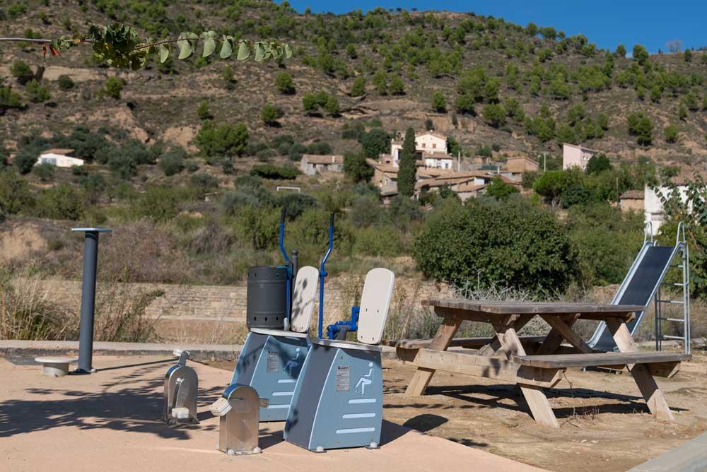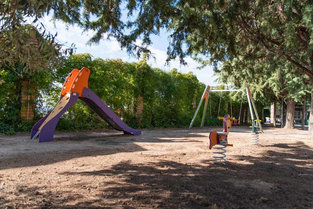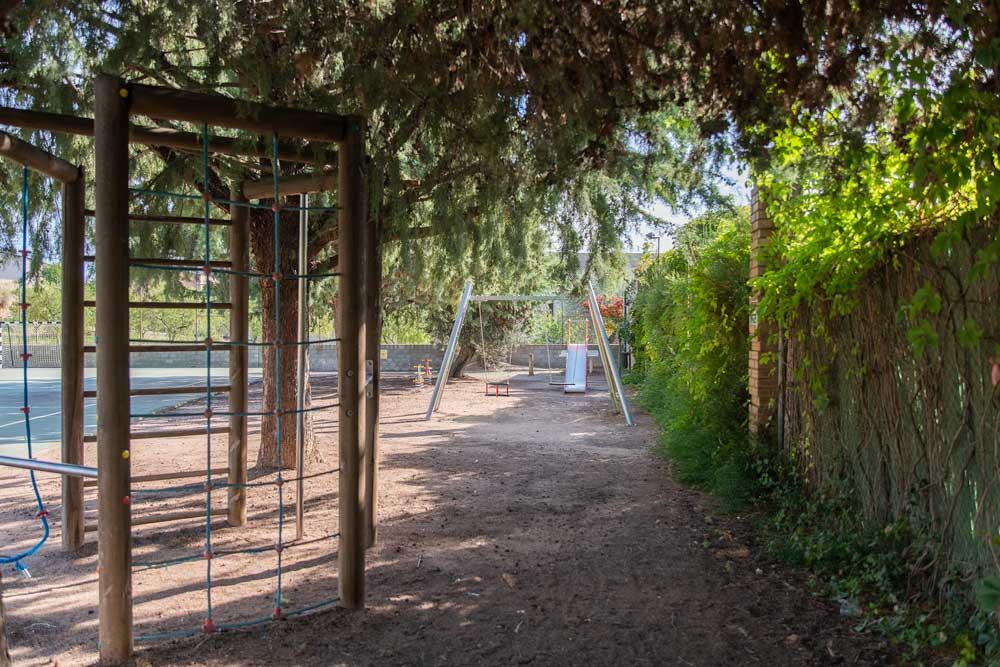 Zona recreativa con parque infantil y parque con aparatos de gimnasia para mayores.